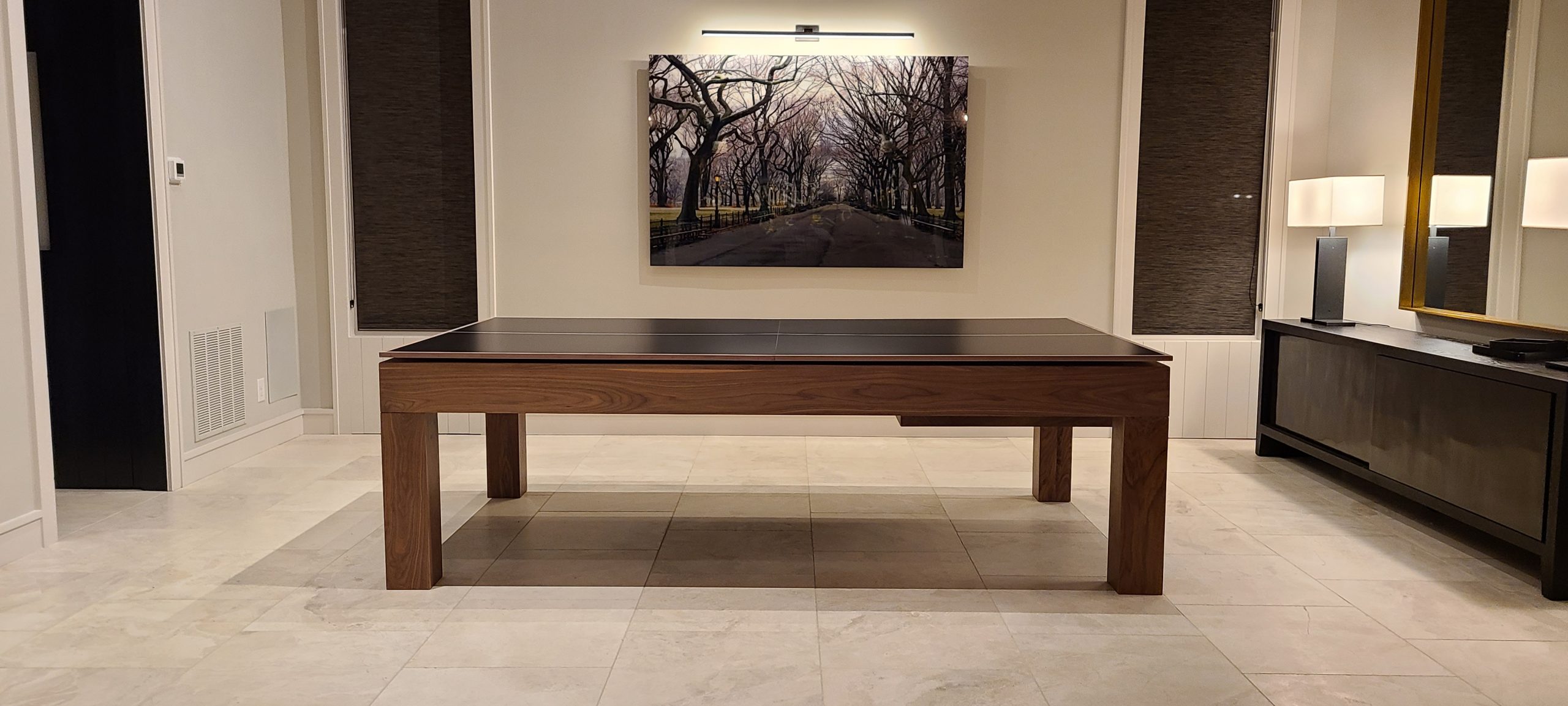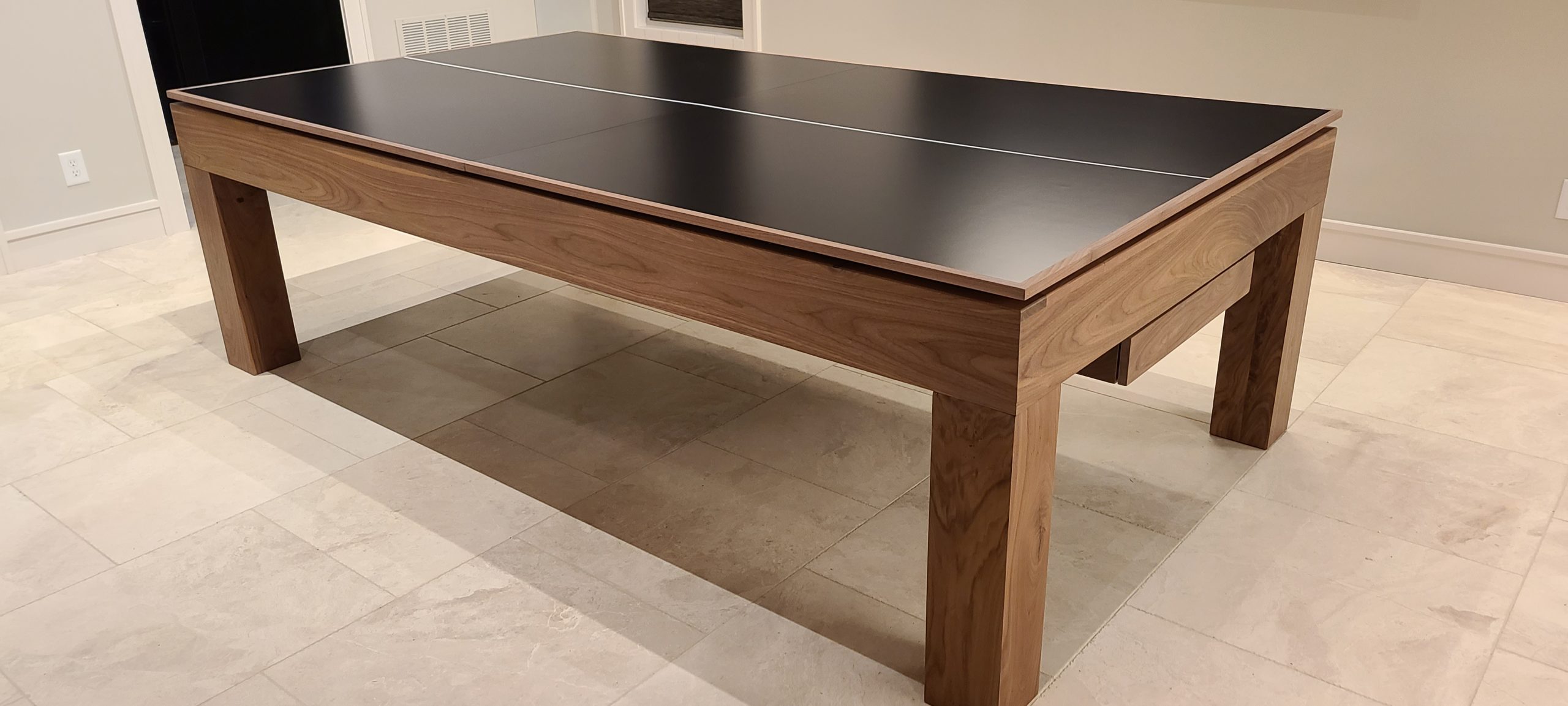 Modern Billiards MFG introduces the MODEL MODERN NATURAL RAW WALNUT WITH PING PONG TOP. We take pride in, Craftsmanship is our specialty we provide only the best grade level of wood and materials for you.
