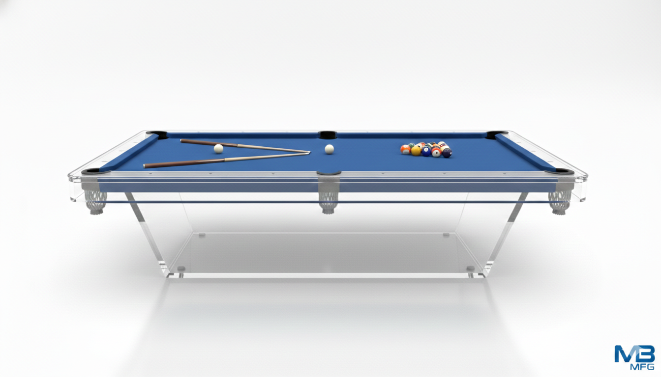 The Lucid acrylic glass billiards table redefines the boundaries of game aesthetics. Featuring our signature high-clarity acrylic apron, this table offers an unobstructed view of the games architecture. Built for the modern enthusiast, it replaces traditional bulky cabinetry with a floating silhouette. Every detail, from the pockets style to the professional- grade slate bed, is designed to offer a world class playing experience without compromising its minimalist DNA.